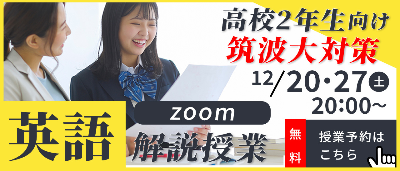 高校2年生の12月にかけての学習の質が受験シーズンの肝になります。筑波大学受験専門オンライン個別指導「ツクガク」では、筑波大や関東難関大を目指し始めた高校2年生向けに、入試に必要な英語の授業を開催し、わかりやすく問題解説をします!