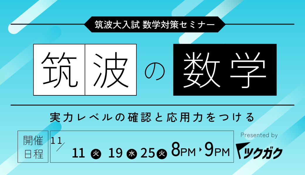 本イベントでは実際に、現役の筑波大生もお呼びし、筑波大学入試数学の出題傾向や対策を、実際に問題演習をお伝えする時間となります。奮ってご参加ください。
